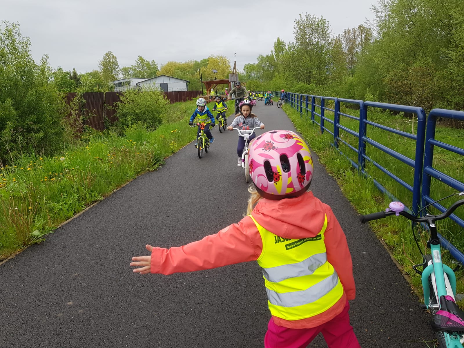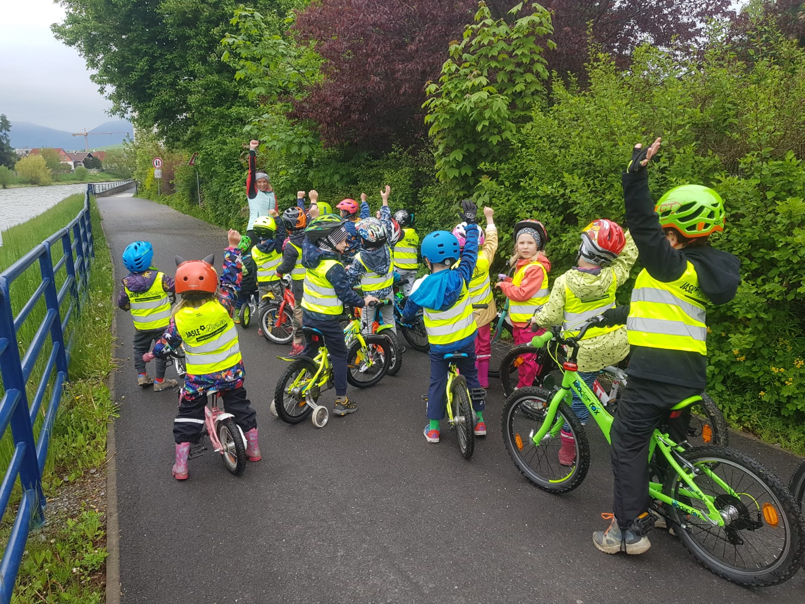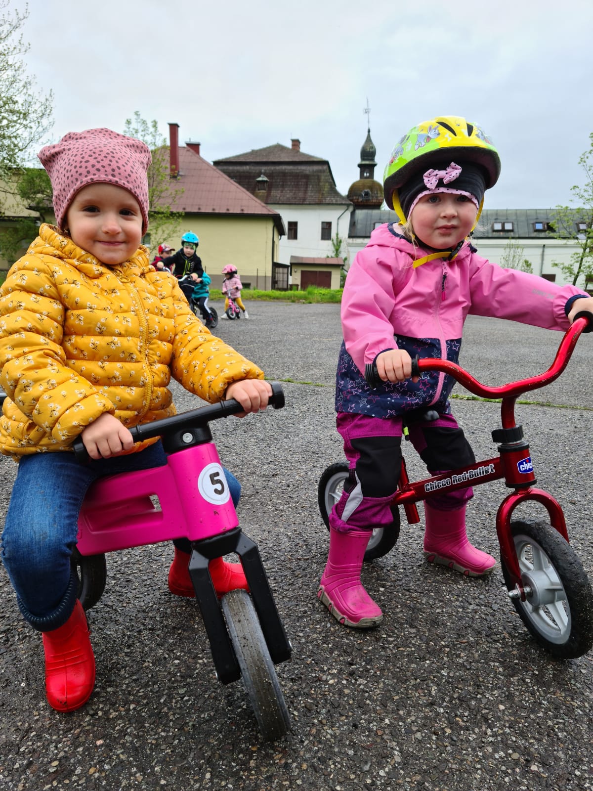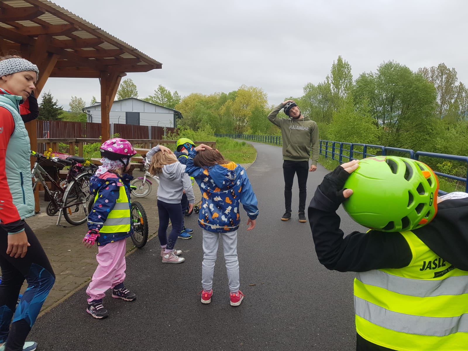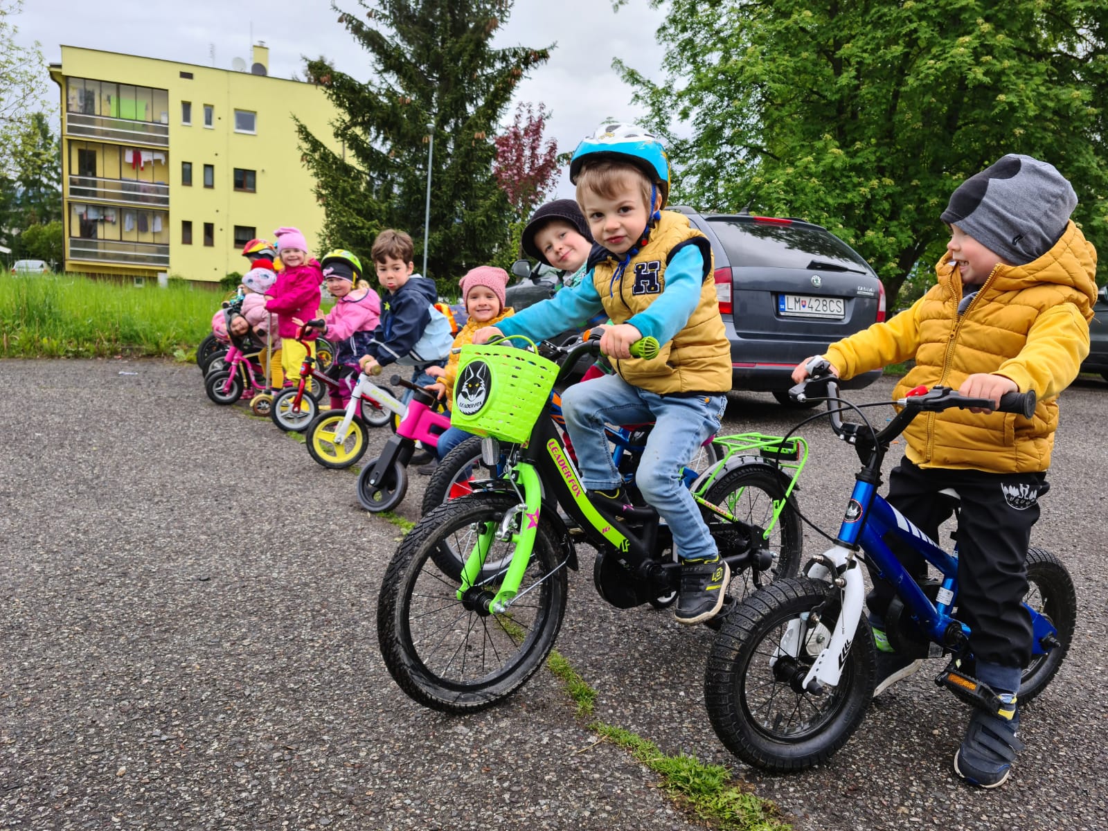 Keď sme zalepili defekty, nafúkali duše, utiahli všetky matice a namastili retiazku, stačilo už len umyť, aby sme boli reprezentatívni a vyraziť do ulíc. Povinná bezpečnostná výbava nesmie chýbať, preto nasadíme prilbu, reflexnú vestu alebo prvky. Ďatelinky trénovali svoju ostražitosť a reflexy na vyznačených tratiach. Odvahu testovali na preklápacej rampe a rýchlosť a silu svojich nôh na rýchlostných pretekoch. Nezábudky za dodržiavania všetkých dopravných predpisov sa pomocou tlačenia a šlapania prepracovali na cyklochodník a došli až na jedno koniec. Rozcvičku od hlavy až po päty absolvovali so slovenským reprezentantom v downhille Adamom Rojčekom. Toho však na privítanie čakala uvítacia akcia – spadnutá retiazka. Všetko sa podarilo a Nezábudky si mohli zmerať sily s cyklistom.