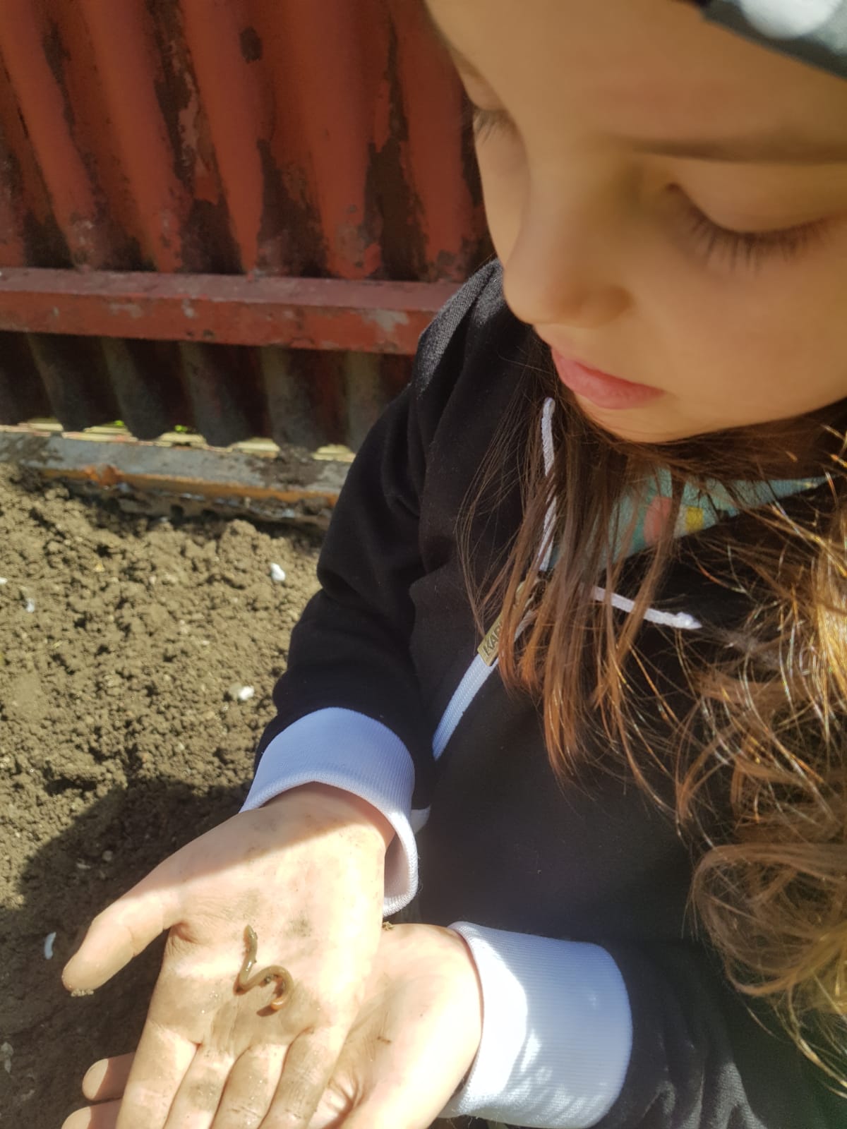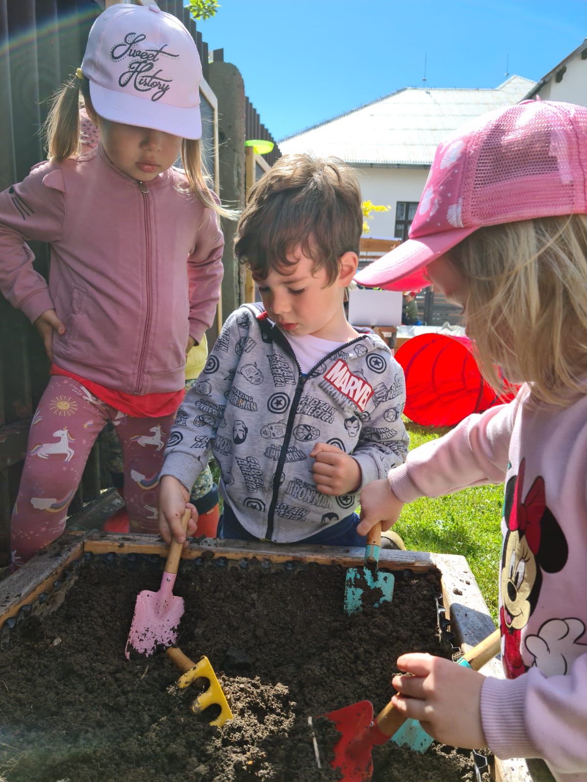 Volant bicykla sme zamenili za hrabličky, rýľ a lopatkynaše záhony zaplnili priesadami byliniek, zeleninky a semienkami a cibuľkami kvetov. Poctivo zalievame a snáď čoskoro vás pozývame na ochutnávku a „ovoniavku“ z našej záhradky. Pozreli sme sa však aj pod povrch našich záhonov. Okrem korienkov a hliny sme v záhonoch objavili dážďovky. Je dobré, že ich tam máme alebo ich radšej niekam presunúť? Jednoznačne sa všetci zhodli na tom, že dážďovky si nechávame v záhonoch. Veď práve František z kompostu nám všetko objasnil.
