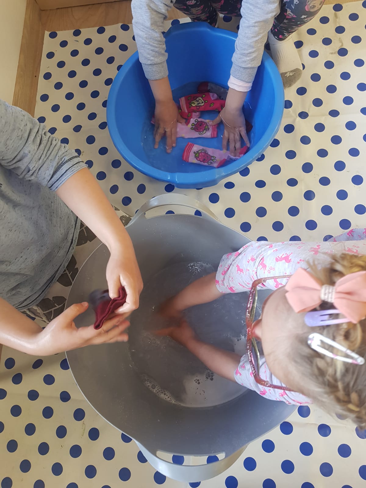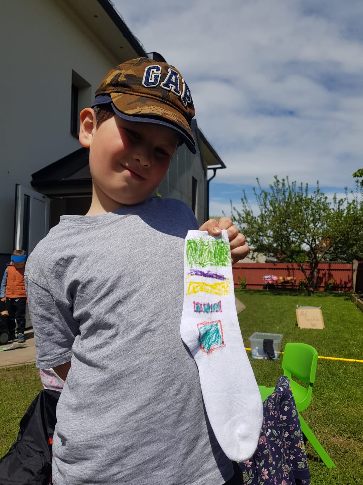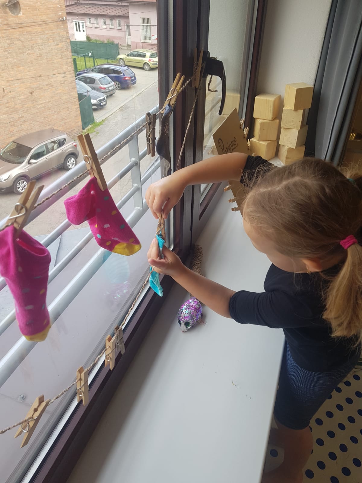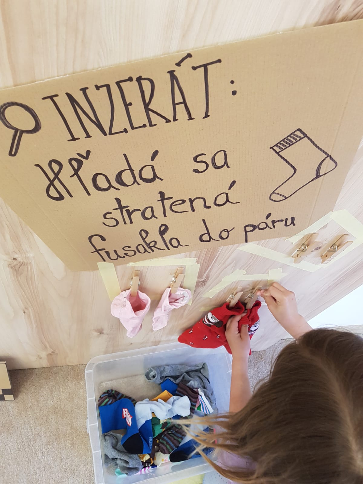 Nezábudky opäť nazreli na výrobu ponožky. Vďaka Fusakliam si vyskúšali celý proces od nápadu po výrobok a zasielanie zákazníkom. Ponožky sú s nami každý deň a prečo ich teda nevyužiť? Ponožky môžeme prať a sušiť. Neváhajte rodičia, ponožky boli krásne vypraté – čisté a voňavé. Namočiť – „prekudliť“ a opláchnuť. V práčke sa často stane, že ponožka z páru ostane sama. Ďalšou dôležitou úlohou bolo ponožky párovať. Tie, ktoré ostali samé sme zoradili od najmenšej po najväčšiu. Cvičili ste už niekedy s ponožkami? Ako závažie nám neposlúži, ale koordináciu tela dokážu precvičiť perfektne. Nechýbala ani ponožková naháňačka a hod fusaklou do diaľky či do koša na pranie 😊
