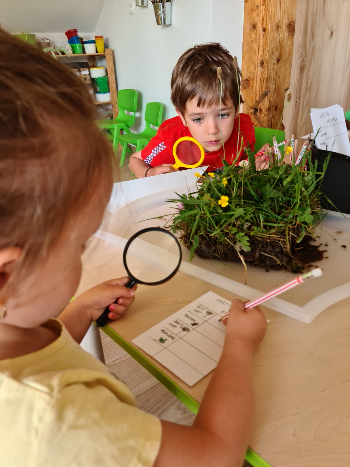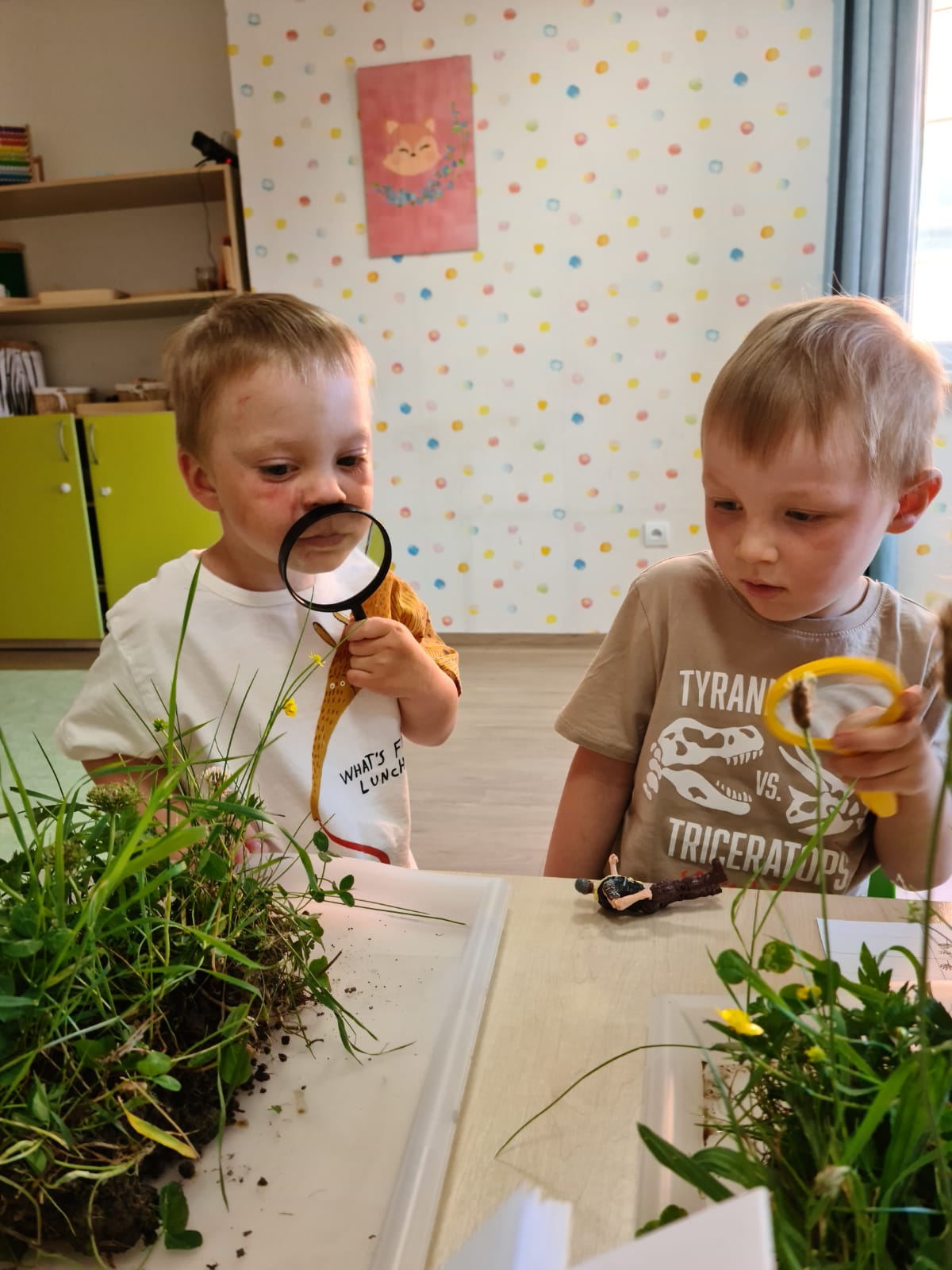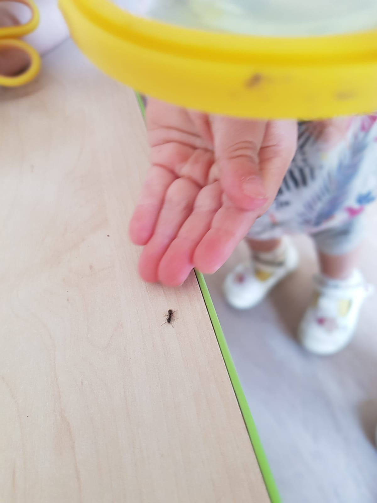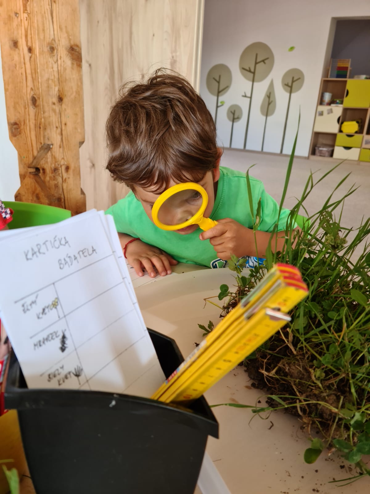 Naše lúčne lobelkové Zvončeky pozorovali lúku pod lupou a dopodrobna. Objavili stonky, kvety, ale aj korienky. Čo rastlinky potrebujú? Áno, jednoznačne vodu, preto sme polievať nezabudli.  Čo keď sa steblo trávy pohne beze toho ,aby fúkalo a bez toho, že by s ním niketorý Lobelkáč pohol? Objavili sme, ako sa to stalo. Stebielko nakláňal silný tvor zo živočísnej ríše – mravec. Viac nám nebolo treba, mravšeka sa nebojíme, na prštekoch ho “povozíme”. Poriadne sme ho vyobzerali a zistili, že mravčekove srdiečko sa nachádza tam, kde by sme usudzovali, že patrí zadoček.
