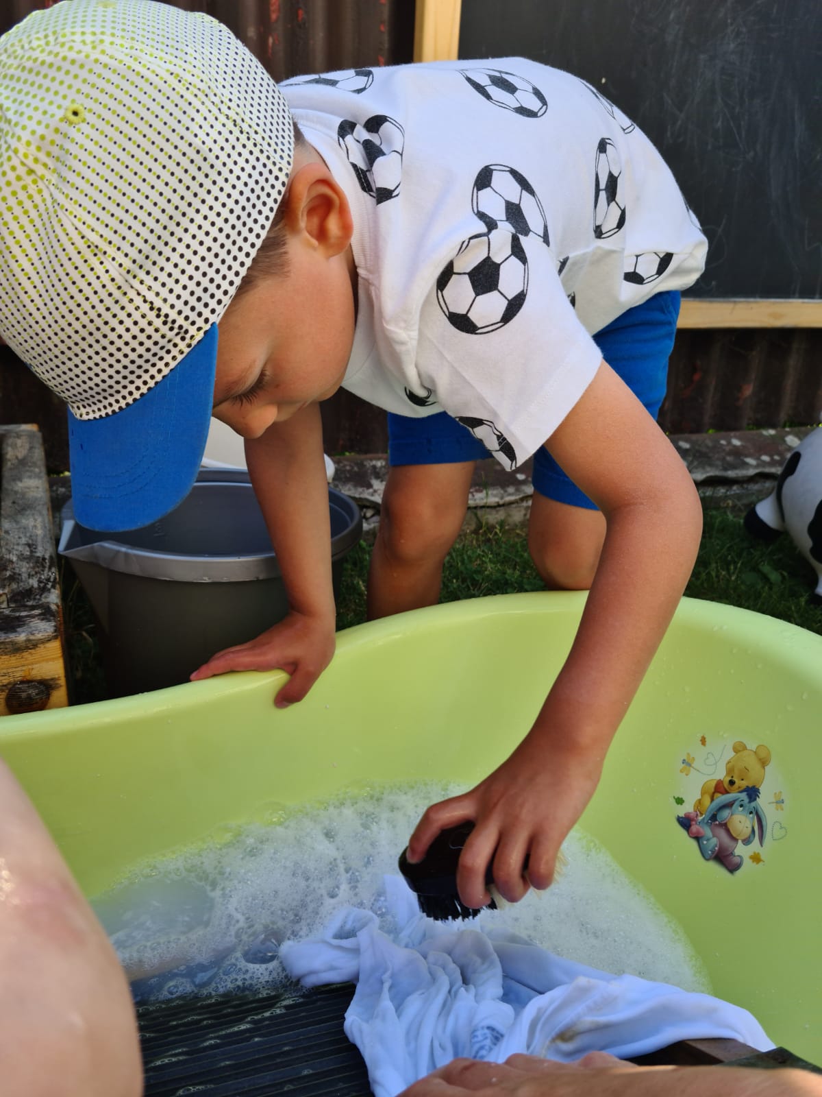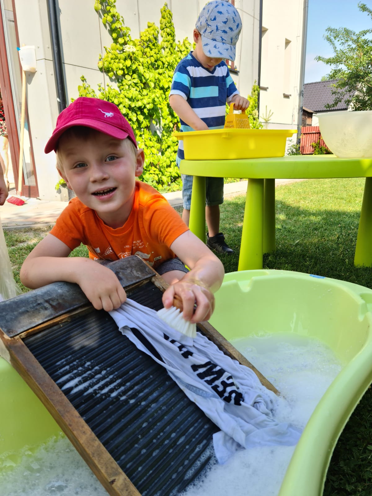 Z rozprávania starých mám či starých filmov si určite pamätáte, ako sa niekedy pralo. Vo vaničke alebo na potoku, na rumpli, nastrúhalo sa mydlo a rajbalo ostošesť. Prádlo sa potom povystieralo po lúke, aby uschlo. Tiež sme si to vyskúšali a bola to poriadna makačka.